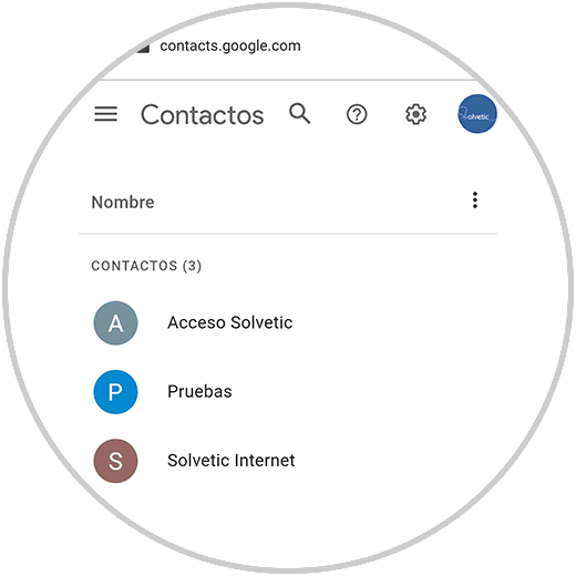 Pulsamos en la opción Contactos y veremos todos los contactos actuales de esta cuenta: