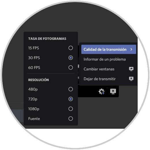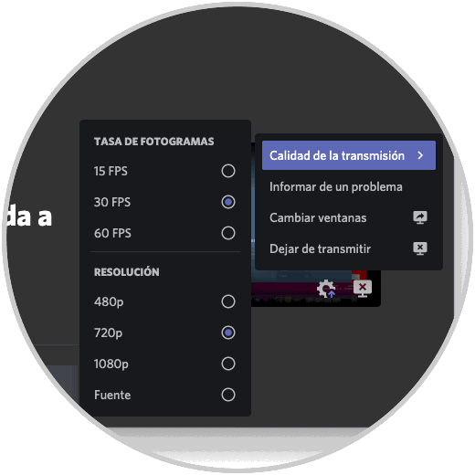 Deslizar hacia arriba nos permite configurar algunos parámetros de audio y video , cuando ya deseemos finalizar, pulsamos en “Dejar de compartir” y veremos que se sale de esta funcionalidad de Discord: