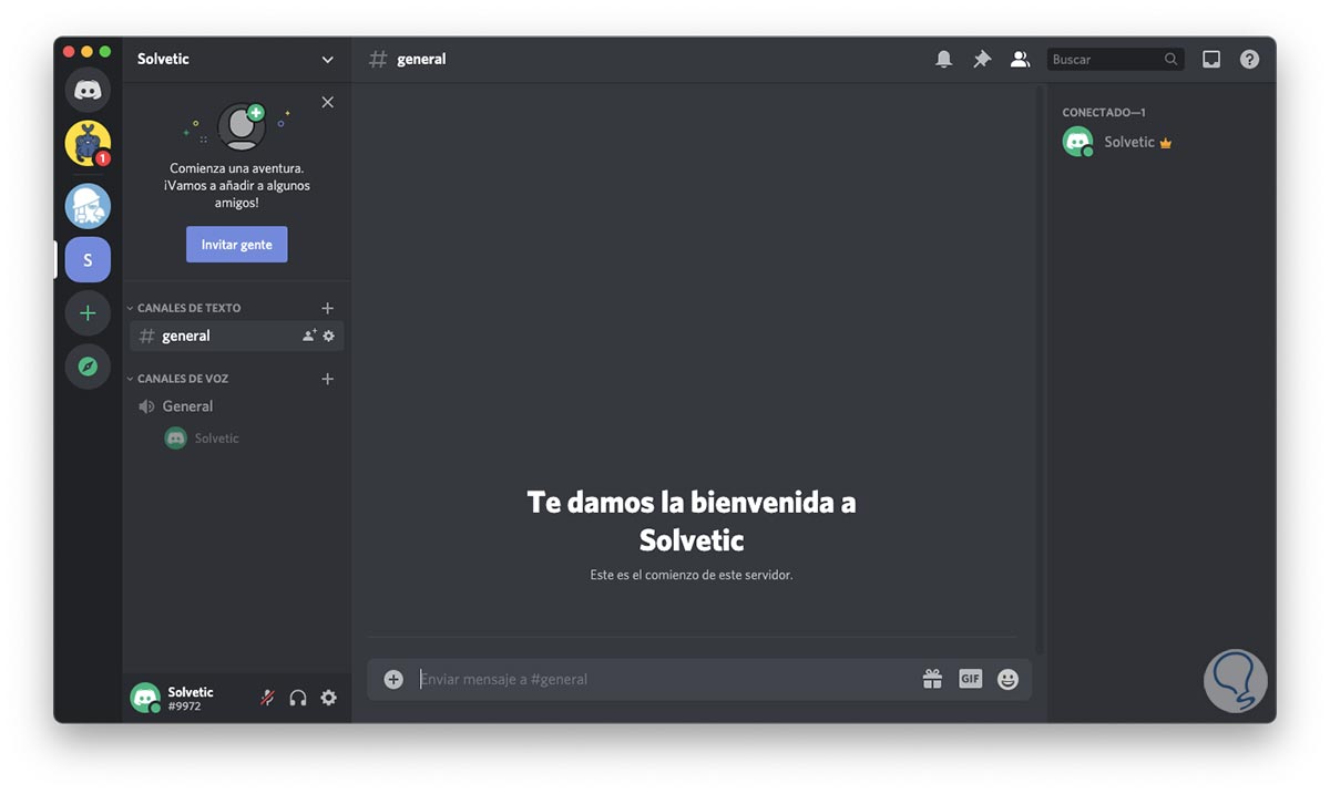 Salimos de los ajustes para acceder al panel central de Discord en macOS: