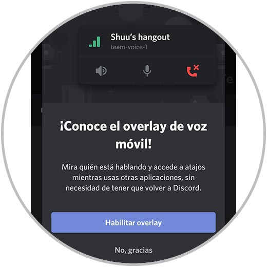 Allí podemos habilitar el overlay o no, esto permite que Discord y la función de voz no se cierre, podemos pulsar en “No, gracias” y accedemos al canal de voz: