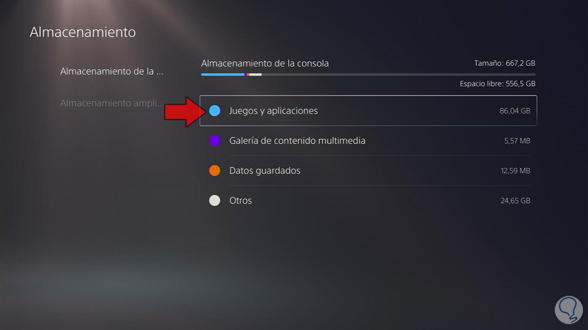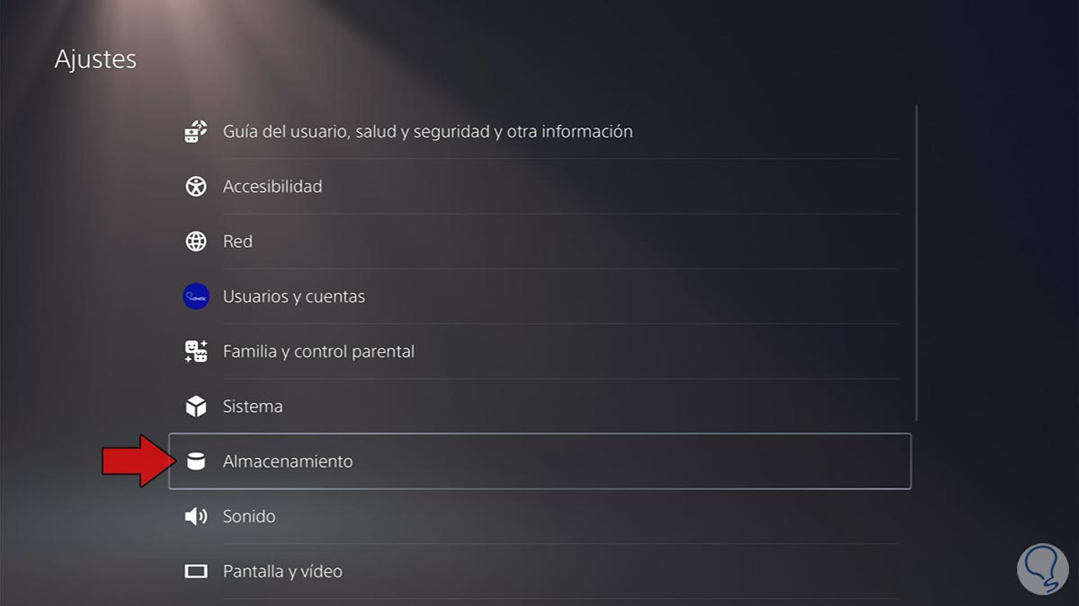 Lo siguiente que debes hacer es pulsar en "Almacenamiento"