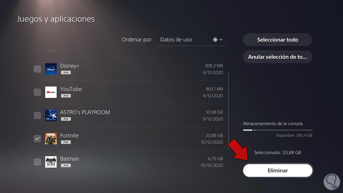 Ahora selecciona el juego que quieres borrar y pulsa en "Eliminar"