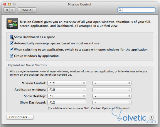 1- Debemos ir a preferencias del sistema, en la opción control de misión y ahí des-seleccionar la opción mostrar el Dashboard como espacio, este paso es necesario por si queremos revertir el proceso de llevar los Widgets al escritorio: