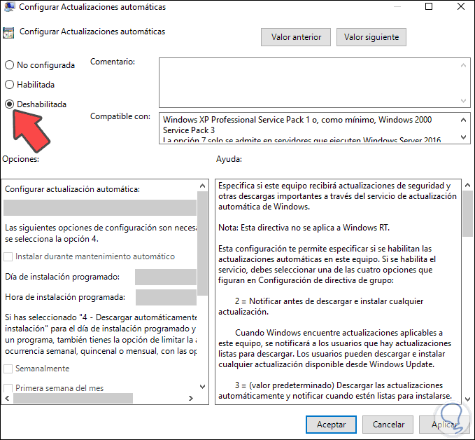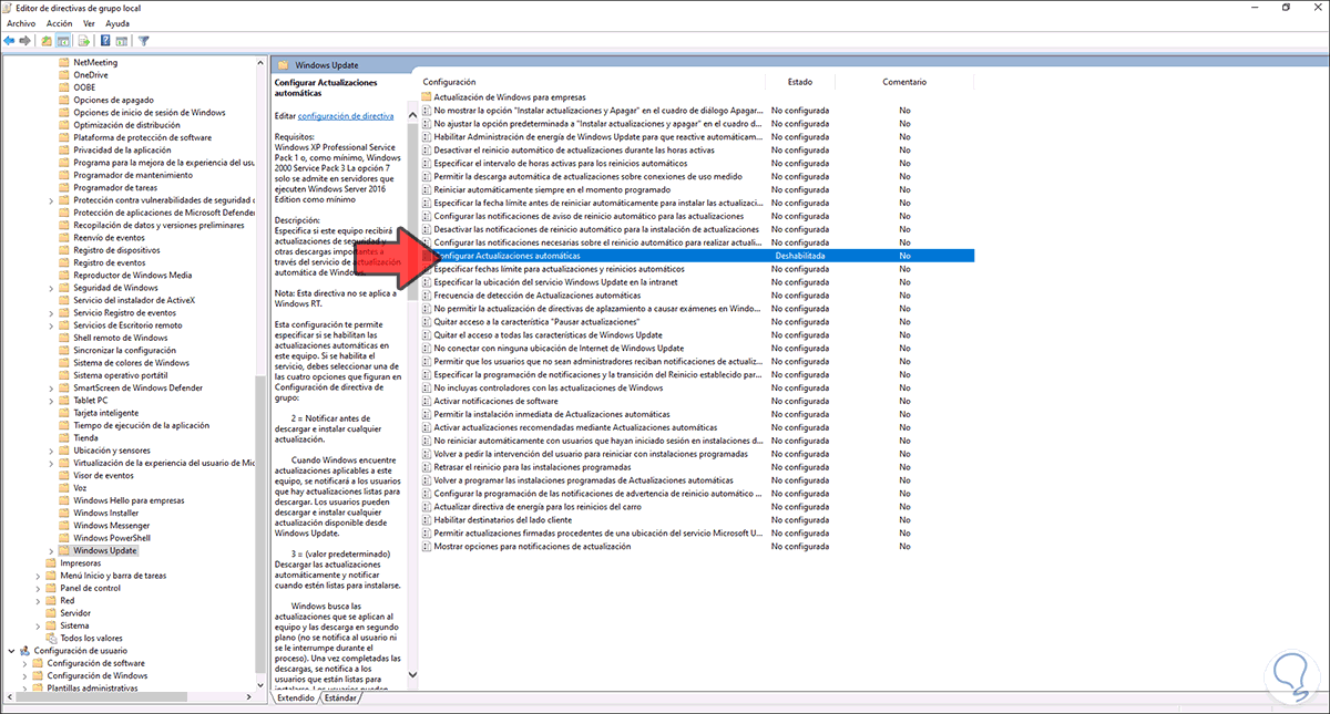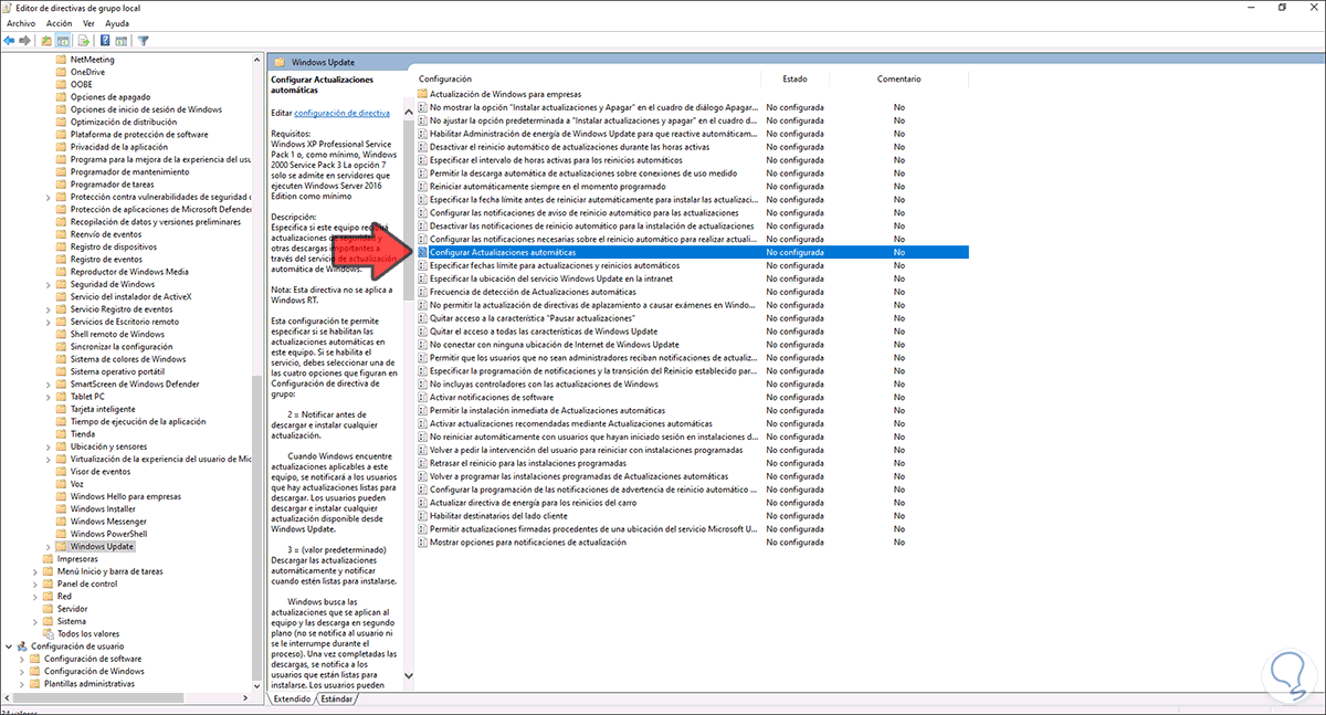 - Ubicamos la política "Configurar Actualizaciones automáticas":