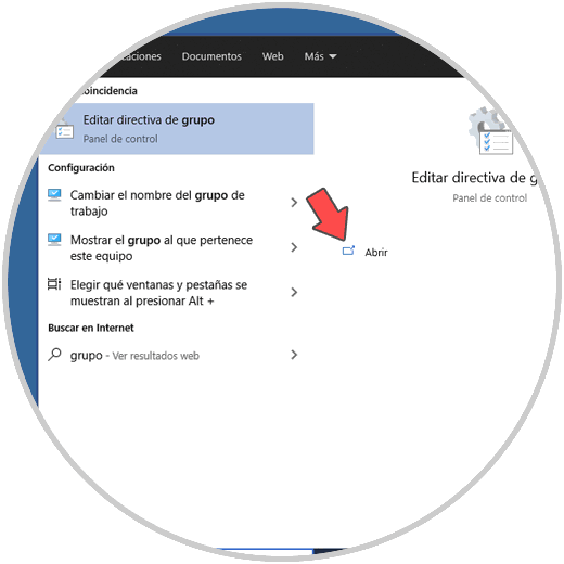 Ahora ingresamos "grupos" en el buscador, allí seleccionamos "Editar directiva de grupo":