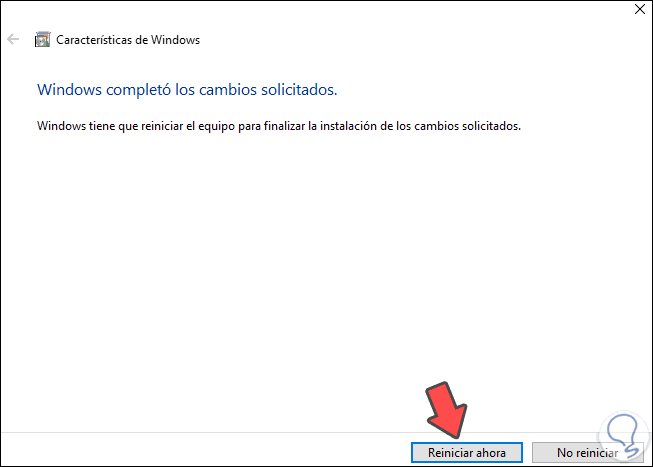 Reiniciamos el sistema para completar el proceso dando clic en “Reiniciar ahora”: