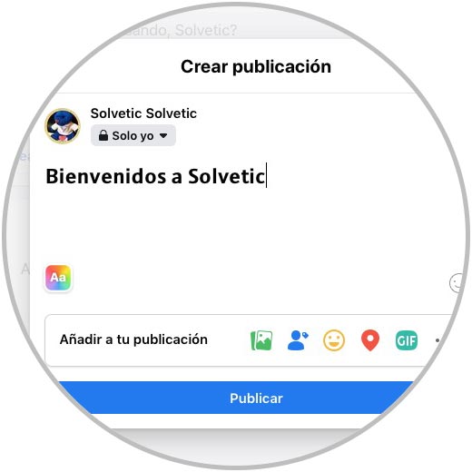 Lo siguiente que debes hacer es seleccionar que quieras hacer una publicación y pegar este texto.