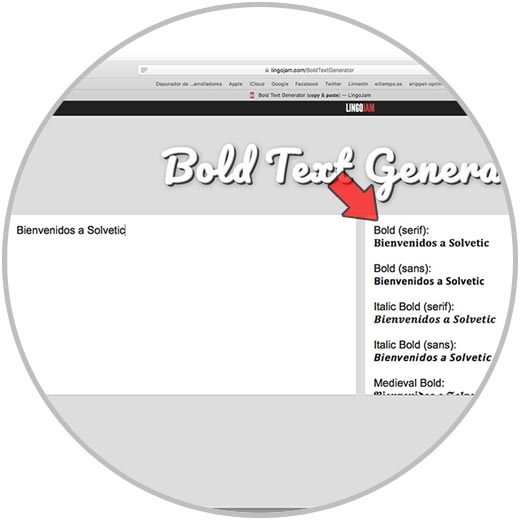 Ahora selecciona en la parte lateral el estilo de letra que quieres poner y copia este texto.