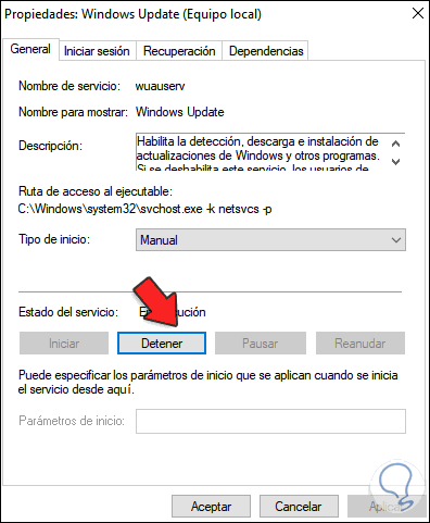 Damos doble clic sobre este y en la ventana emergente veremos el estado actual del servicio:
