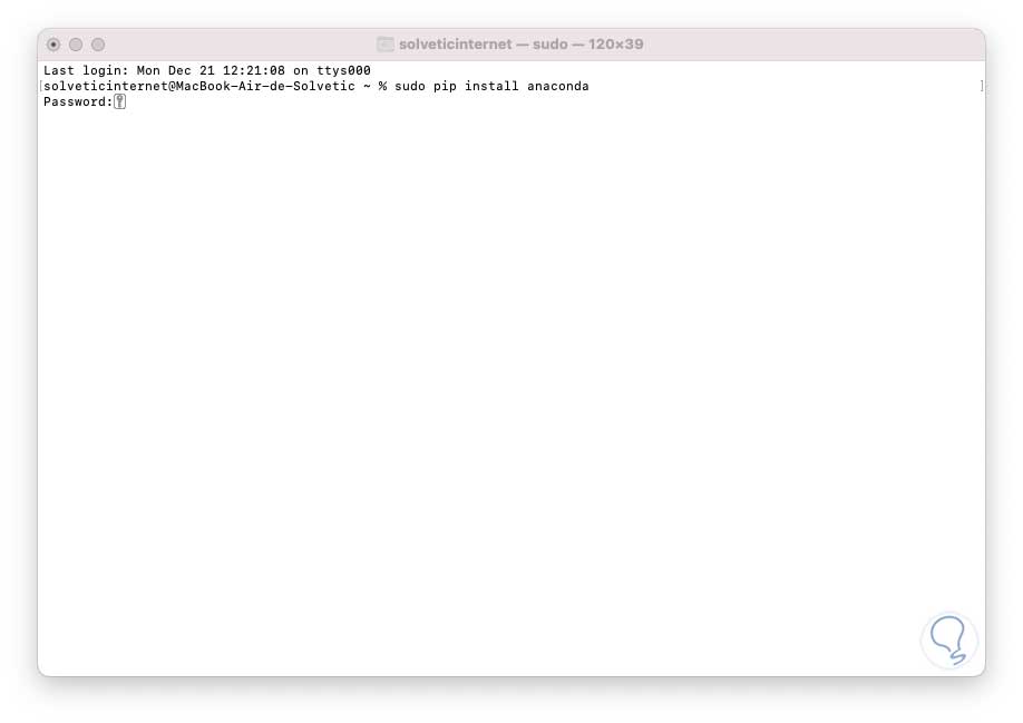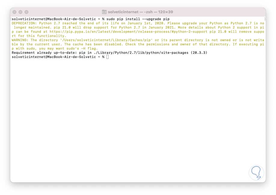 Para instalar un programa usando pip, abrimos la terminal en macOS y allí ejecutamos lo siguiente: