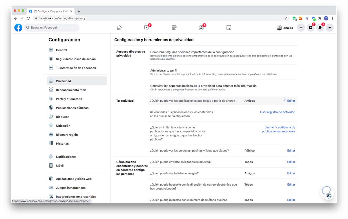 En el caso de que quieras poner Facebook privado desde el PC, los pasos que debes seguir son los siguientes.
