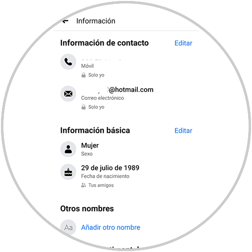 Si entras dentro de tu información, también podrás configurar aquellos detalles que quieres que sean privados acerca de tus datos.