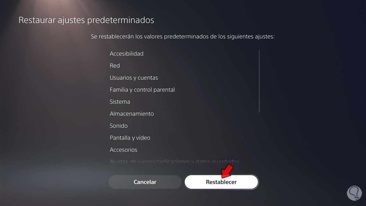 Restaurar ajustes predeterminados PS5