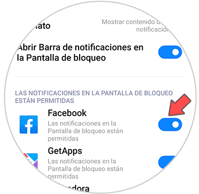 También puedes activar o desactivar las notificaciones en la pantalla de bloqueo para una aplicación en concreto activando o desactivando la pestaña que aparece junto al nombre de la App en el listado.