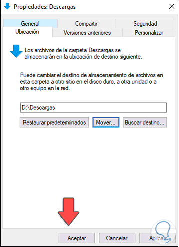 Aunque esto es un valor por defecto del sistema, es un punto que en algunos usuarios pueden encontrar algunos fallos ya que al ser Descargas en la unidad C, se pueden ver afectado el tema del espacio del disco y con ello tener una repercusión con el comportamiento del sistema y de las aplicaciones. Para corregir esto, simplemente podemos mover las descargas a ora ruta, en este caso a la unidad D donde no se verá afectado todo lo que la unidad C maneja en Windows 10, para saber cómo hacer esto Solvetic te dará el paso a paso para ello.