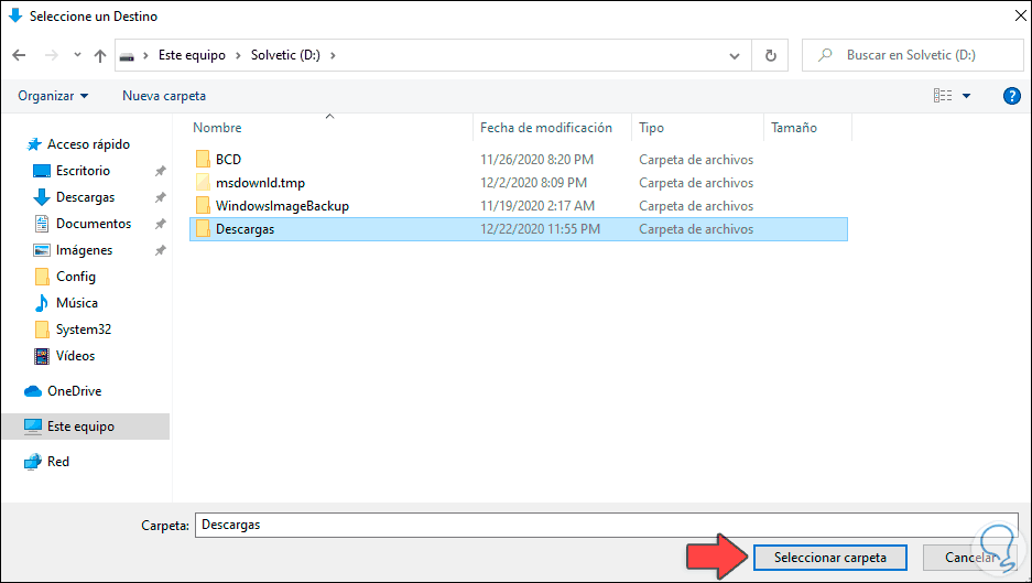 Así de simple es mover la carpeta Descargas de la unidad C a la unidad D en Windows 10.