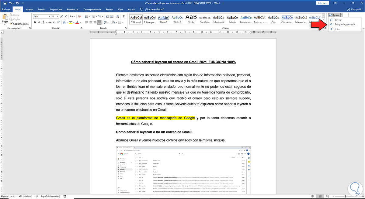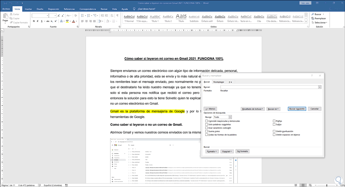 Allí damos clic en el botón “Buscar siguiente” para que en el documento de Word se seleccione el texto resaltado y así la búsqueda sea mucho más simple y funcional.