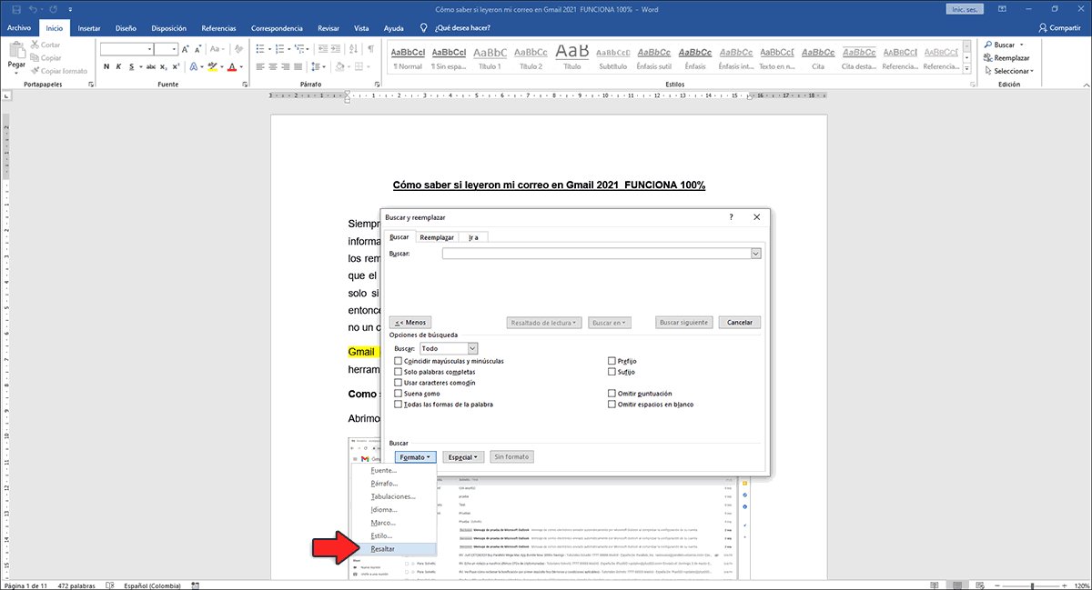 3. Cómo buscar texto resaltado en Word 2016 – 2019