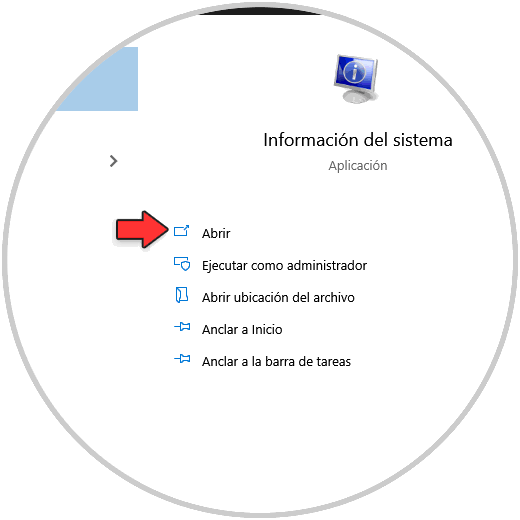 La primera de ellas es ingresar "msinfo32" en el buscador y seleccionamos "Información del sistema":
