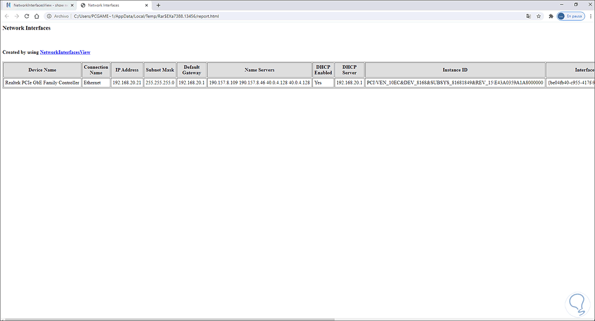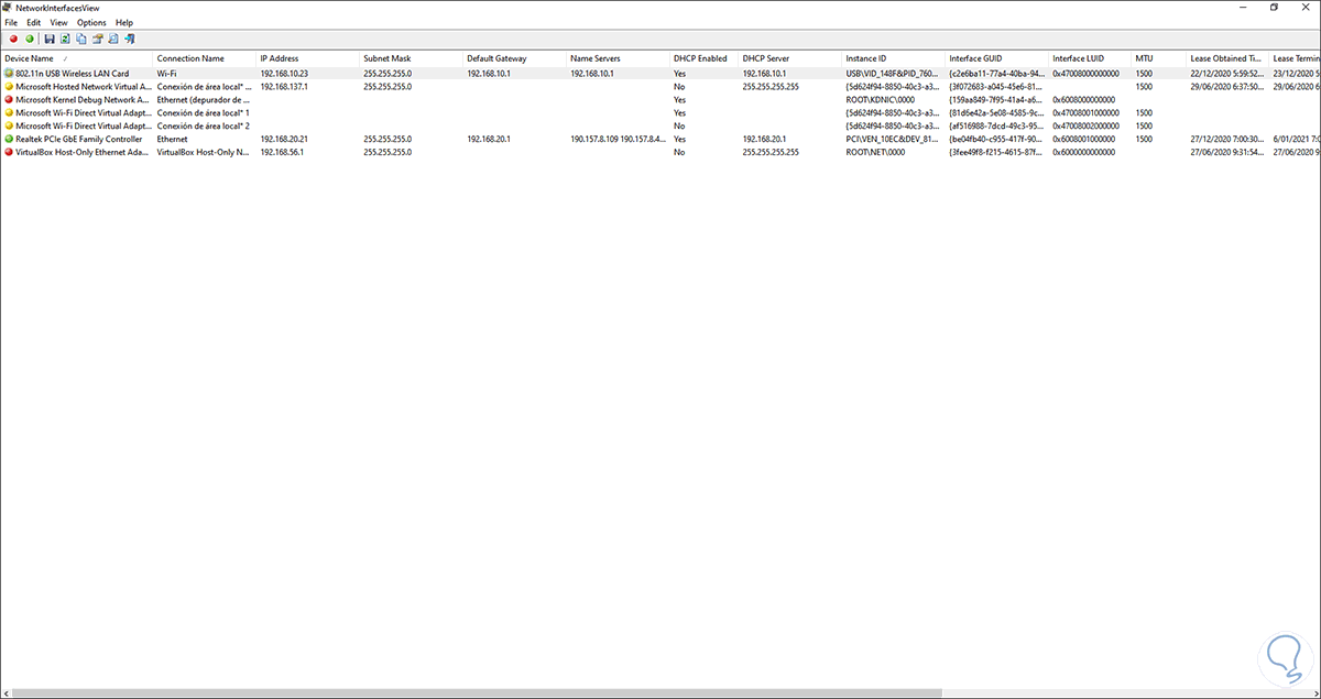 Para este caso vamos a usar la aplicación gratuita NetworkInterfacesView la cual encontramos disponible en el siguiente enlace:
