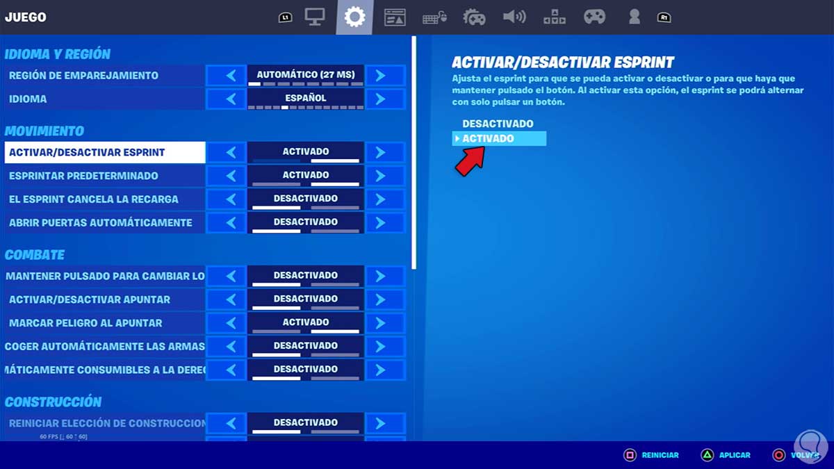 Los pasos que debes seguir para activar la opción de correr automáticamente en Fortnite desde la PS5, son los siguientes.
