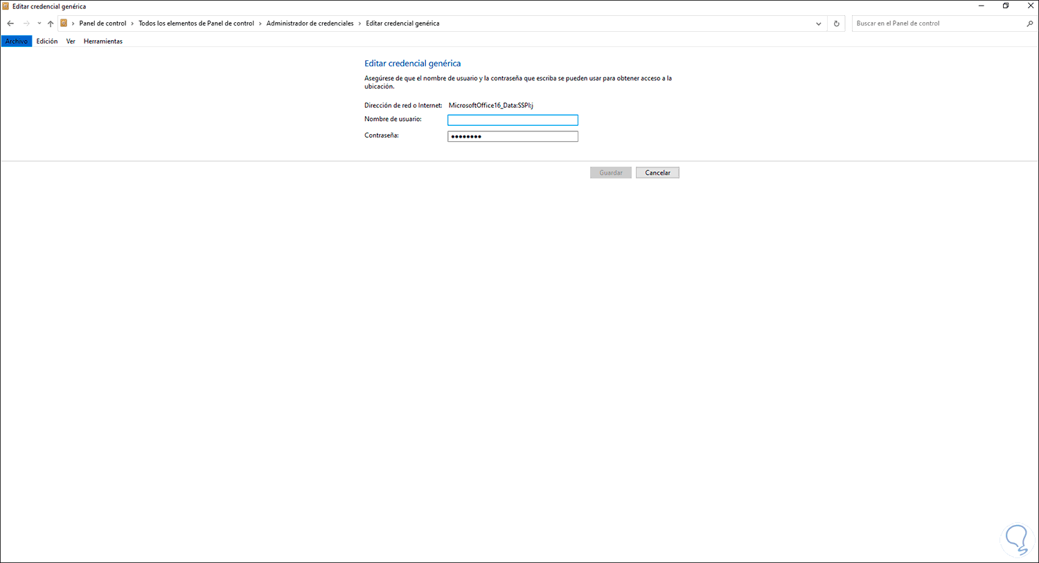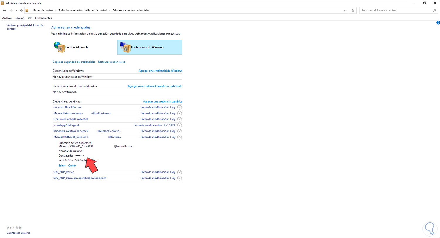 Vamos a "Credenciales de Windows" y confirmamos que se ha actualizado la contraseña:
