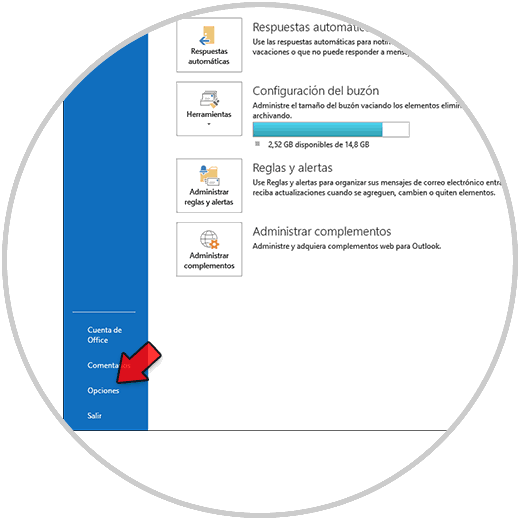Abrimos Outlook y vamos a "Archivo - Opciones":