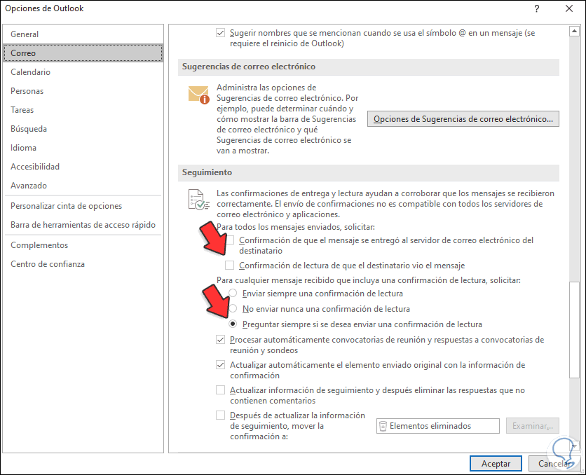 - "Preguntar siempre si se desea enviar una confirmación de lectura"