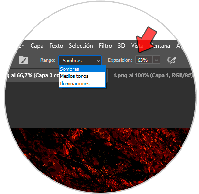 En la parte superior vamos a elegir qué queremos ajustar como pueden ser las sombras primero y cuál será el rango de exposición a aplicar.