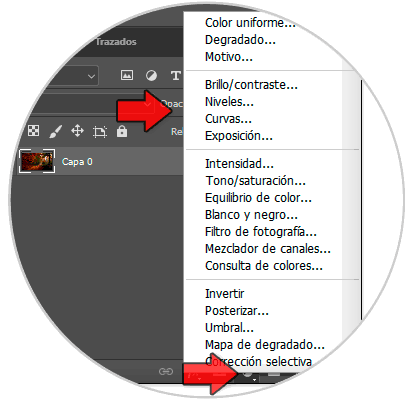 Una vez abierta nuestra imagen podemos ir a las opciones inferiores dentro del panel capas, aquí encontraremos diferentes opciones:
