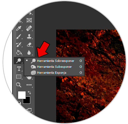 Vamos al panel de herramientas y pulsaremos sobre la herramienta de “Sobreexponer”.