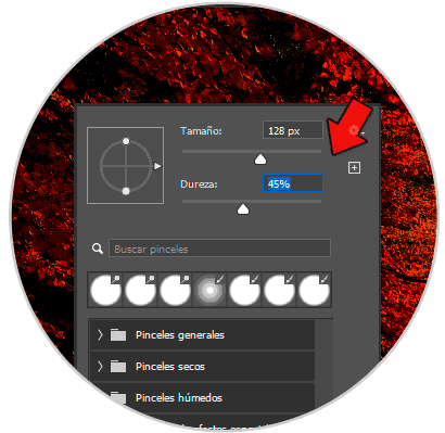 Además, puedes hacer clic derecho sobre el lienzo y ajustar la dureza del pincel para que no se note mucho el corte de unas zonas y otras al aplicar la sobreexposición. También puedes modificar el tamaño del pincel para una corrección más concreta.