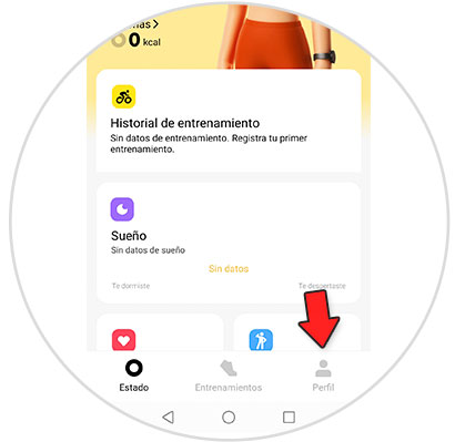 Una vez descargada, crea tu cuenta o inicia sesión. Aparecerás en la siguiente pantalla. Pulsa en “Perfil” en la barra inferior.