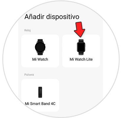 Selecciona el tipo de reloj, en este caso “Mi Watch Lite”.