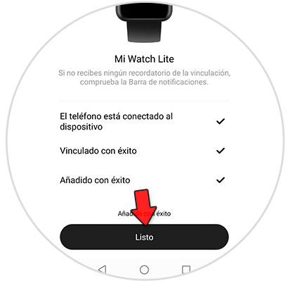 En la pantalla del móvil, pulsa en “Listo” para terminar de realizar la conexión con el reloj.