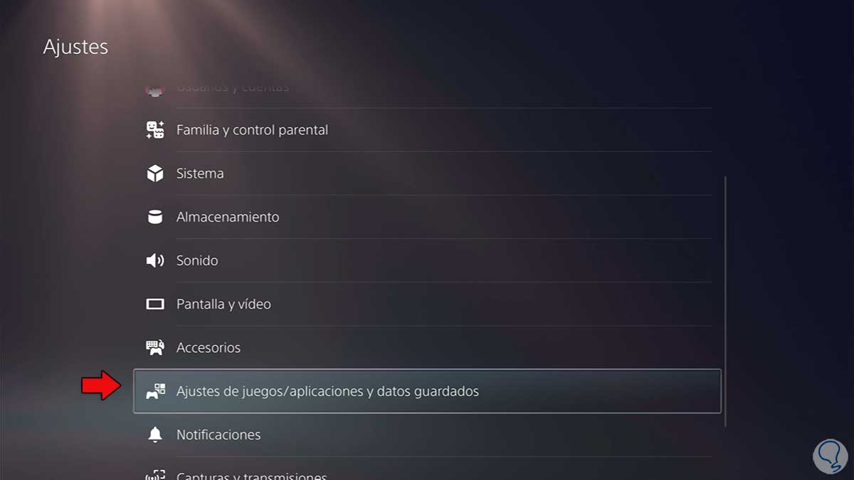 Ahora pulsaremos sobre “Ajustes de juegos / aplicaciones y datos guardados".