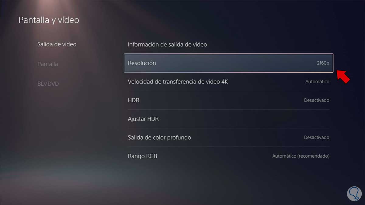 Aquí pulsaremos en “Resolución” y elegiremos la resolución “Automática” o la máxima con la que seamos compatibles.