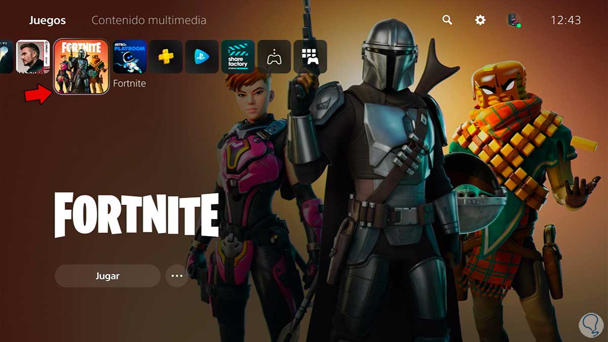 Lo primero que haremos será ir al Panel principal de la PS5 y nos situamos encima del juego de Fortnite.