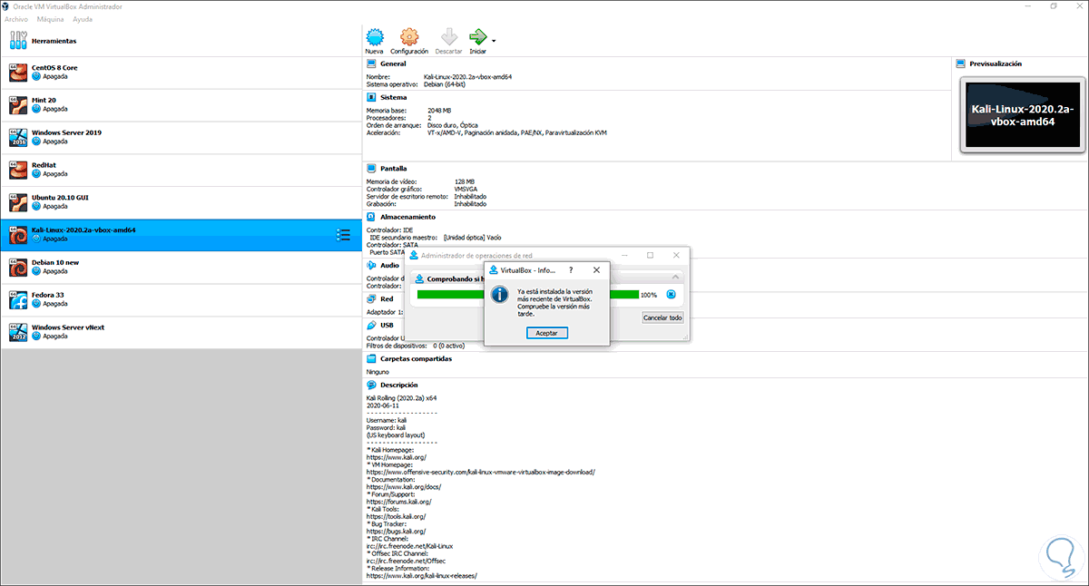 Pero el temor de algunos usuarios es que al actualizar VirtualBox se pierda la configuración de una o de todas las máquinas virtuales, si este es tu temor, Solvetic te explicará cómo actualizar VirtualBox conservando la integridad de las máquinas virtuales.