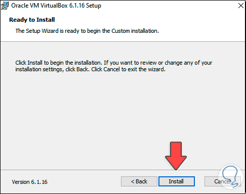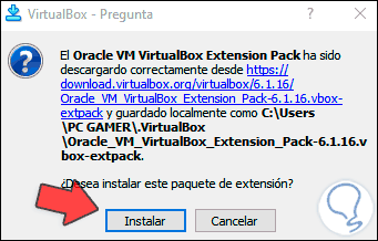 Damos clic en “Install” para comenzar el proceso de actualización de VirtualBox: