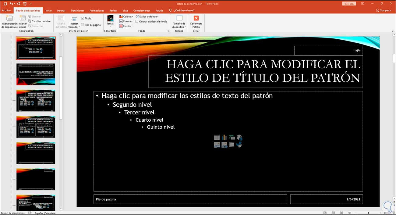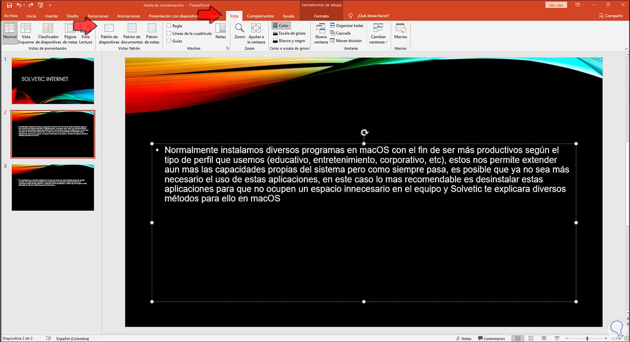 Si optamos usar este método, abrimos PowerPoint y vamos al menú "Vista - Patrón de diapositivas":