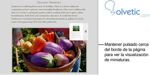 Podemos arrastrar el dedo hacia arriba o hacia abajo para ver las miniaturas de las páginas de nuestro documento.