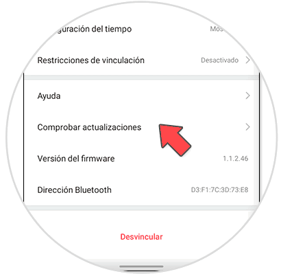 Esto desplegará el panel de configuración de nuestro Amazfit Neo. Ahora bajamos hacia la parte inferior de los ajustes y pulsaremos en “Comprobar actualizaciones”.
