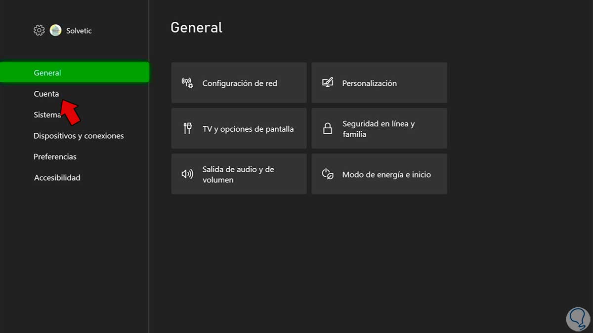 Ahora pulsa en la opción de “Cuenta” en la parte izquierda del panel.