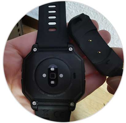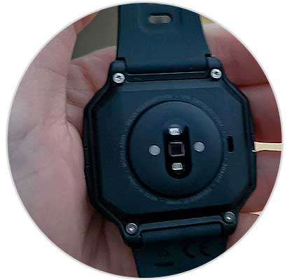 Si damos la Vuelta al Amazfit Neo, veremos que contamos con dos contactos metálicos en su base.