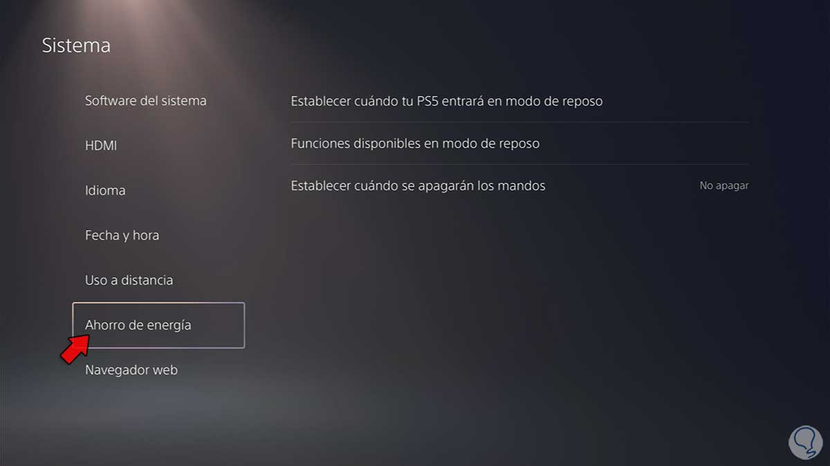 A continuación, entra dentro del panel izquierdo de “Ahorro de energía”.