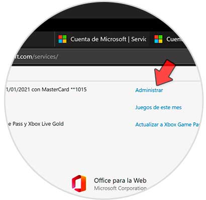 Ahora se nos abrirá el navegador para gestionar nuestra cuenta. Aquí pulsa en “Administrar” al lado de tu tarjeta asociada a cargos.