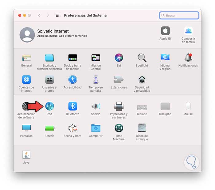 Para este método accedemos a Preferencias del sistema desde el Dock y veremos lo siguiente. Vamos a la sección Red donde veremos lo siguiente:
