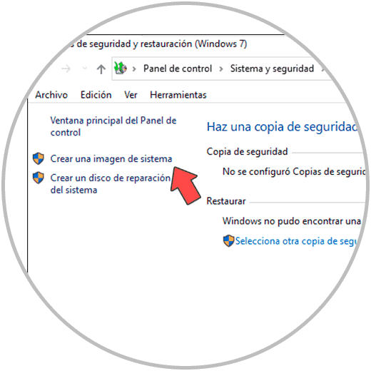 En la ventana desplegada damos clic en "Ir a Copias de seguridad y restauración (Windows 7)":