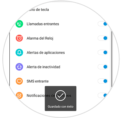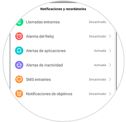 Tienes también posibilidad de activar o quitar notificaciones como SMS o llamadas.